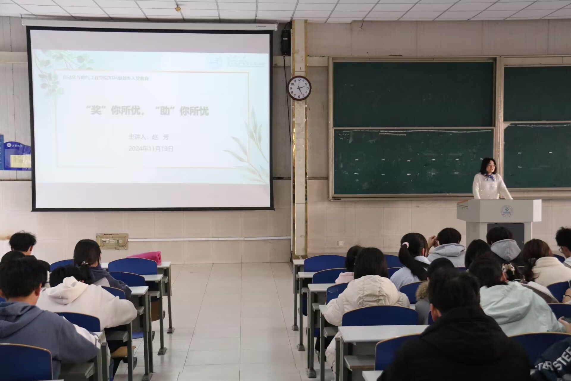 11月19日下午,威尼斯官网资助工作负责人赵芳以《“奖”你所优,“助”你所忧》为题面向2024级新生开展入学教育,进行奖助政策宣传。